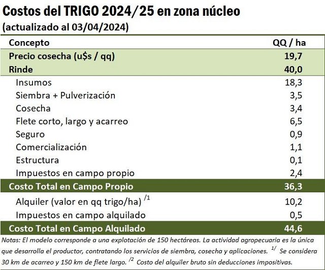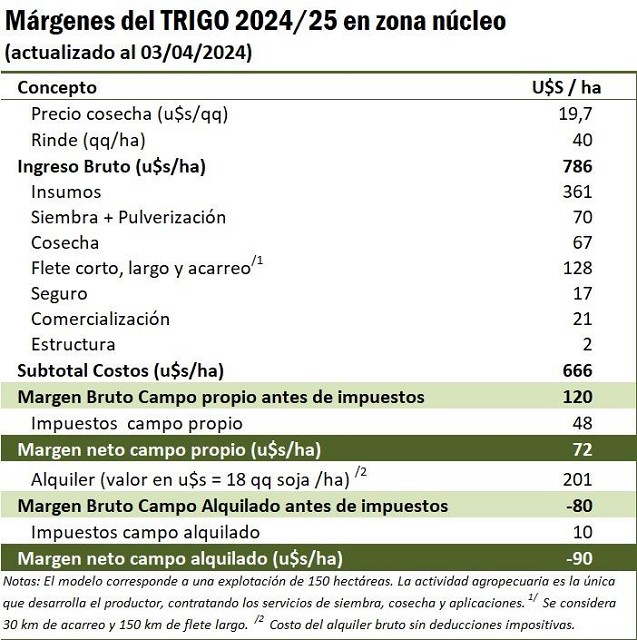 En base a la última actualización de precios (insumos, fletes, dólar y precios de commodities futuros, etc.) del 3 de abril, los números siguen muy ajustados para el cereal.