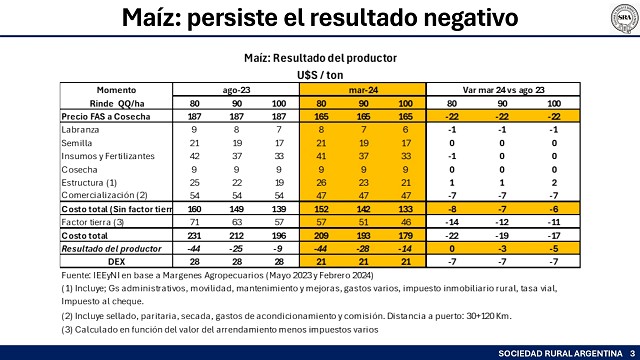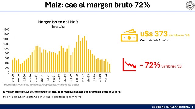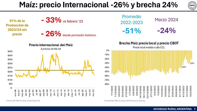 “El contexto de alta presión impositiva, sumado a precios internacionales bajos y un alza en el costo de producción y comercialización, ponen al maíz en una situación que necesita una respuesta urgente”, enfatizó el presidente de la SRA.