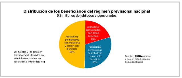 El 20% restante tiene jubilación más pensión, de los cuales el 80% obtuvo la doble cobertura con las moratorias.