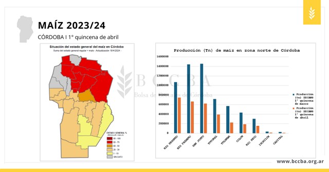 La zona centro norte de la provincia de Córdoba, cuya proporción de siembras de maíz tardío fue de 92%, vió disminuida su producción desde la primera estimación a comienzos del mes de marzo en un 50%.ç