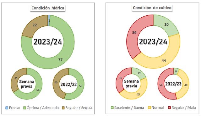 Con el 64 % del área cosechable reportando una condición entre Normal y Excelente, mantenemos nuestra proyección de producción en 49,5 MTn, lo que significa una reducción en términos absolutos de 7 MTn respecto a la proyección inicial.