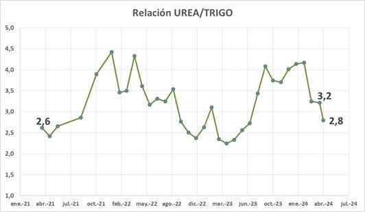 Respecto de las condiciones comerciales, que llevaron al productor a hacer una gran apuesta tecnológica en el 2021, hubo cambios significativos en las últimas dos semanas y ahora la relación urea/trigo se acercó notablemente a la de aquel entonces.
