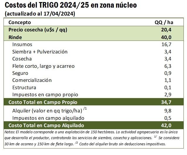 Mejoran los márgenes en campo alquilado en U$S 49 /ha para el trigo