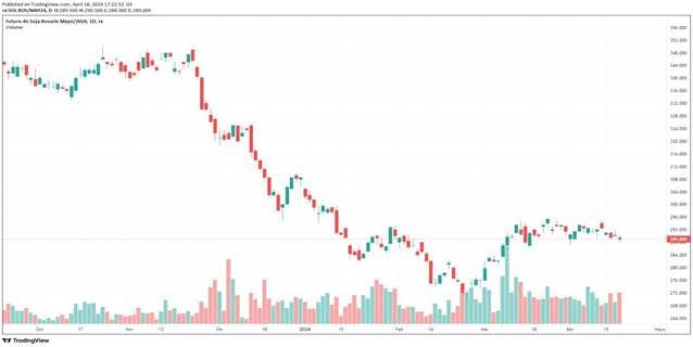 Rofex desde Septiembre a Diciembre tuvimos todas las herramientas para vender futuros de Dólar y Precios en soja Mayo 2024, con precios de soja que fueron desde u$ 330 a 350 y futuros de dólar desde $ 1400 a $ 1750 .Por ej., con máximos que nos daban $ 578.000 ( $ 1700 x u$ 340) , pero que paso ¿? En esos meses el país estaba muy politizado, que ya se pensaba en 1 dólar de $ 2000/2500 como algunas empresas praicearon sus productos de ventas y se venia de una sequía que demoró hasta el día de hoy las ventas .