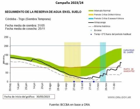 La condición agrometeorológica, es la principal variable a tener en cuenta al momento de decidir el área a sembrar. Para que el cereal tenga un buen desarrollo durante su ciclo, es necesario contar con suficiente agua útil en el perfil. En el caso particular de Córdoba, durante el invierno las lluvias son escasas o nulas, por lo que adquiere gran relevancia las precipitaciones acumuladas durante los primeros meses del año, principalmente durante el mes de mayo.