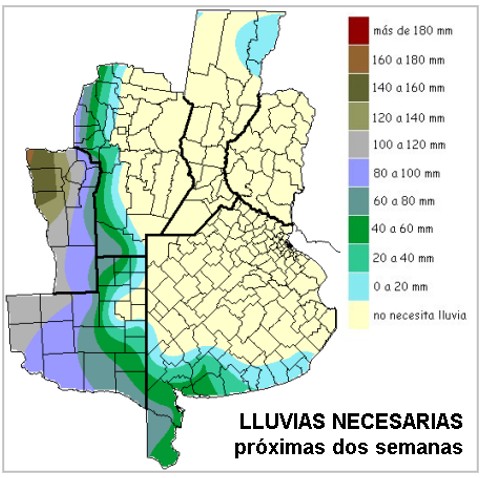 Si consideramos el estado actual de reservas y planteamos la demanda de lluvia partiendo de estas condiciones, no sorprende que el resto del mes requiera muy escasas precipitaciones para mantener los perfiles en niveles adecuados de humedad. Para esto convergen factores elementales, como el retiro de los requerimientos hídricos por parte de las coberturas que van cerrando el ciclo, la fuerte disminución de las exigencias atmosféricas y la recirculación del aire húmedo.