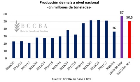 En Argentina, según la Secretaría de Bioeconomía, la superficie sembrada rondaría los 10,6 millones de hectáreas, sobre las cuales han finalizado las labores de cosecha sobre el 23% de dicha área. Para el ciclo 2023/24, se obtendría una producción estimada en 56 millones de toneladas.