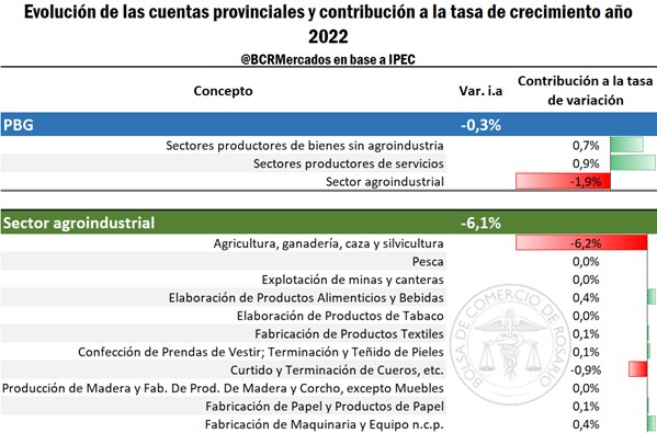 Aun así, los efectos de la feroz sequía aún no han sido traducidos en términos de pérdida sobre el valor agregado y nivel de actividad geográfica, por lo que cabría esperar una agudización en la caída de la actividad agroindustrial en el año 2023 y un considerable impacto sobre el agregado de valor provincial.