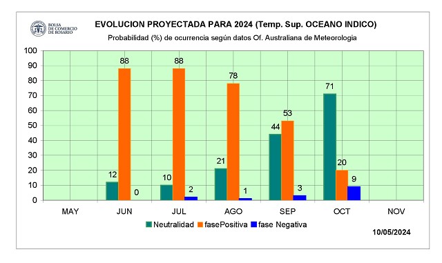 Pero cómo se espera que el índice del Dipolo índico esté en fase neutral entre septiembre y octubre, “anulando su acople con la Niña, aumenta la probabilidad de contar con lluvias casi normales entre octubre y noviembre”, dice el consultor.