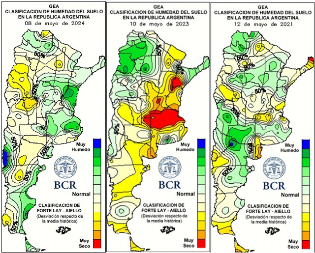 En aquel año hubo una muy fuerte inversión del productor en fertilización y tecnología que fue determinante junto al clima para lograr producir 23 Mt. En este ciclo, más allá de la proyección Niña, hay factores que van a favor de un ciclo exitoso de trigo. Y sí, se pude ser optimista para este ciclo que está empezando. Al análisis de lo que se espera en clima, se suman los mapas de anomalía de reservas de agua en el suelo, mostrando que lejos del peor escenario de siembra de un año atrás, las condiciones con la que comienza el ciclo de trigo 2024/25 incluso son mejores que en el 2021/22.