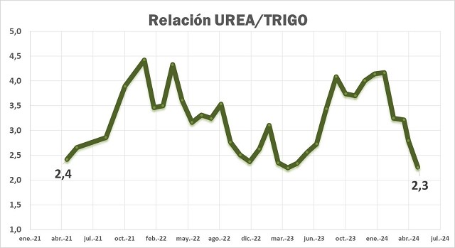 La relación urea/trigo hoy es mejor que la de la cosecha record de trigo en 2021