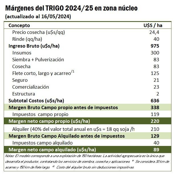 En las últimas semanas, se ha observado una significativa mejora en los márgenes del cultivo de trigo, apuntalada por una nueva suba en el precio del cereal para la posición diciembre 2024.