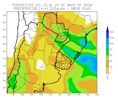 El norte y el este del Área triguera, gran parte del Cinturón Maicero, el norte del Delta y el norte de la Región Sudeste observarán precipitaciones moderadas a muy abundantes (10 a 75 mm). Observándose un foco de tormenta severas con precipitaciones superiores a 150 mm que se ubicarán sobre el sudoeste del Cinturón Maicero, el nordeste del Delta y el noroeste de la Región Sudeste.