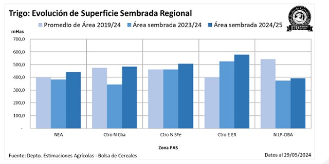Se da inicio a la campaña 2024/25 con un avance de siembra del 9,7% del total proyectado en 6,2 MHa, reflejando una demora de - 10,5 p.p. respecto al promedio 2018/23.