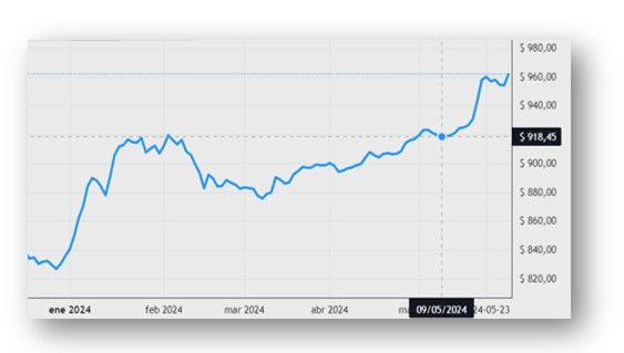 En el siguiente cuadro, se advierte cómo desde el 30 de mayo, se renueva la suba.