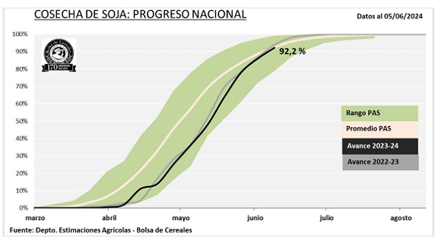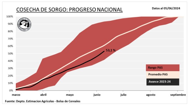 Se cosechó el 53,1 % del área apta y la producción se proyecta en 3,5 MTn. Los rindes de los planteos tardíos del centro y norte se alejan de lo esperado, lo que podría impactar negativamente en la actual proyección.
