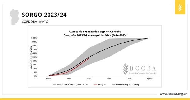 SORGO: 47% de avance de cosecha; 183 mil tn de producción. Incremento interanual 21%.