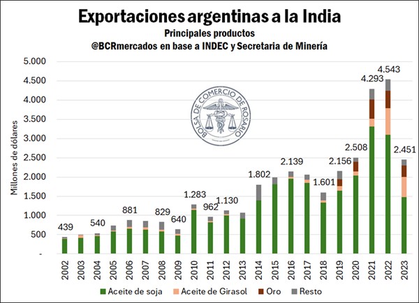 La India tiene una importancia trascendental para el comercio exterior argentino. Es el principal socio comercial del principal complejo exportador del país. Es decir, el comprador más importante del Complejo Soja argentino.