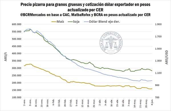 Además, más allá del recalentamiento sobre el precio del dólar financiero en la última semana, el tipo de cambio exportador actualizado por CER se ubica en el nivel más bajo del año, lo cual podría limitar la dinámica comercial.