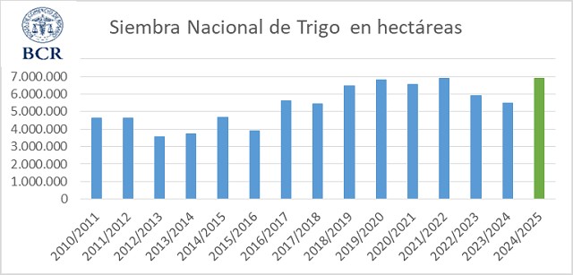 El trigo 2024/25 tiene el potencial de lograr una siembra récord