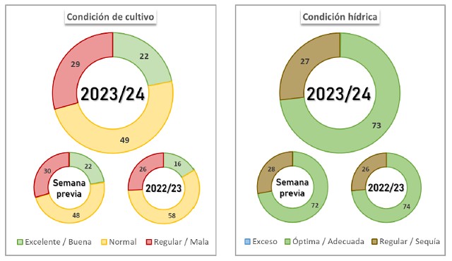 Tras un avance interquincenal de 11,1 p.p., la siembra ha cubierto el 14,5 % de la superficie proyectada en 1,3 MHa. Las labores han cobrado impulso en los núcleos cebaderos del sur debido a las últimas precipitaciones.