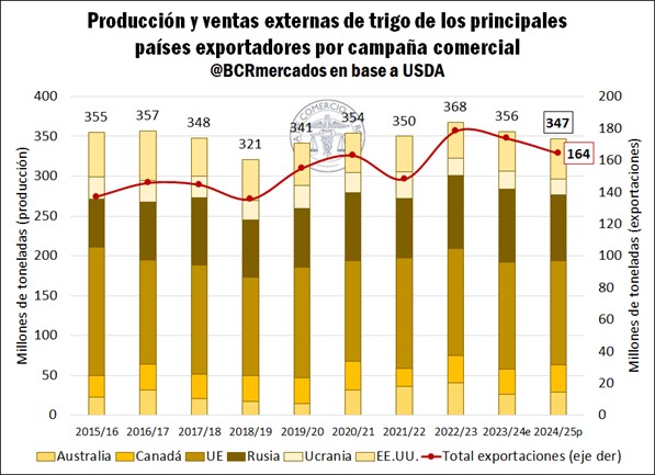 Llevando la mirada al plano internacional, las novedades vienen de la mano de las nuevas estimaciones de oferta y demanda mundial que publicó esta semana el Departamento de Agricultura de los Estados Unidos (USDA, por sus siglas en inglés). La mirada se centra en las nuevas estimaciones de producción 2024/25 de los principales países exportadores, luego de que algunos de ellos atravesaran condiciones climáticas adversas.