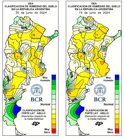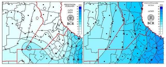 En uno de los junios más secos de los últimos 60 años, las lluvias del fin de semana largo fueron claves para avanzar dónde más demora había: en el norte de Buenos Aires. Allí, en los útimos siete días, la siembra pasó del 30% al 80%. De esta manera, la región lleva sembrado el 90% del trigo. Junio 2024 llega a su término como uno de los seis junios más secos de los últimos 60 años. La mitad de la región núcleo finaliza con registros mensuales inferiores a los 3 mm cuando la media de junio, de este a oeste, es de 35 a 10 mm. Pero el otoño culminó con lloviznas y lluvias débiles sobre el noreste bonaerense. Allí, entre el 20 y 26 de junio se registraron 14 a 18 mm acumulados en forma aislada. El valor más alto fue de 17,4 mm y se midió en Rufino, Santa Fe.