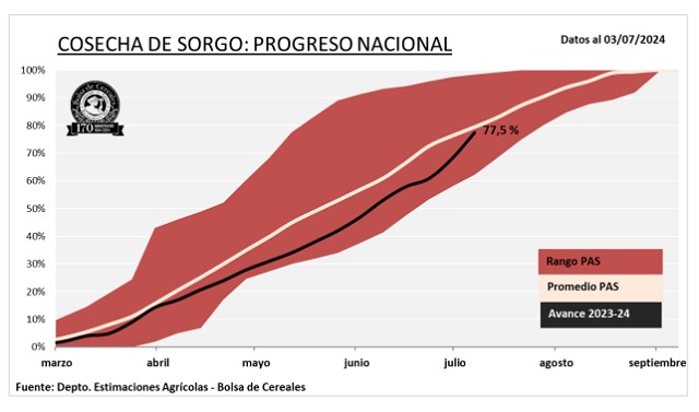 Por último, la cosecha de sorgo granífero tuvo un avance importante de 16,6 p.p. durante los últimos quince días. Los colaboradores reportaron que los golpes de calor y la falta de agua, sumado a algunos focos de pulgón amarillo y presencia importante de aves, produjeron una reducción significativa en los rendimientos de los planteos sembrados desde diciembre en adelante, situación que no permitirá alcanzar las proyecciones iniciales.