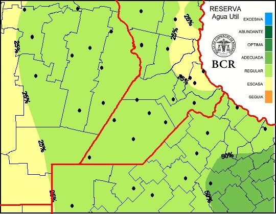 Los lotes de trigo implantados están naciendo en muy buenas condiciones. Pero la prolongada ausencia de lluvias se hace evidente en la capa superficial, tanto para los recién sembrados como para las primeras implantaciones que empiezan a macollar. Esto se observa en la imagen actual de reservas para el primer metro y una pradera permanente.