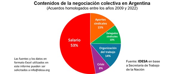 Estos datos muestran que la negociación centralizada está fuertemente enfocada en definir salarios, el financiamiento de los sindicatos y la resolución de conflictos entre delegados sindicales. Más que negociación colectiva, son “acuerdos paritarios”. En cambio, temáticas relacionadas con la organización de la producción para mejorar la productividad o abordar crisis ocupan un lugar secundario. Para las empresas, especialmente las más chicas, los convenios colectivos son una poderosa fuente de rigidez ya que imponen escalas salariales y contribuciones para los sindicatos, sin posibilidad de organizar mejor la producción para aumentar la productividad o negociar las mejores alternativas para afrontar las crisis.