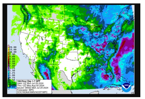 Pronóstico de lluvias. Válido 29/07 - 05/08. EE.UU.