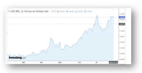Otro elemento que sigue sosteniendo la tendencia a la baja de los precios se fundamenta en la continua depreciación de la moneda brasileña respecto al dólar.