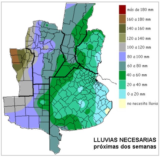 El atraso pluvial repercute en la demanda del perfil. El cruce entre el balance hídrico y la demanda de lluvias para recomponer la humedad hasta niveles adecuados, define un escenario que no es posible satisfacer en el corto plazo.