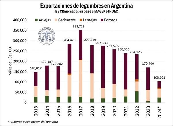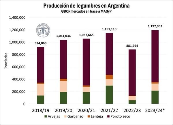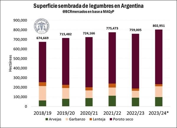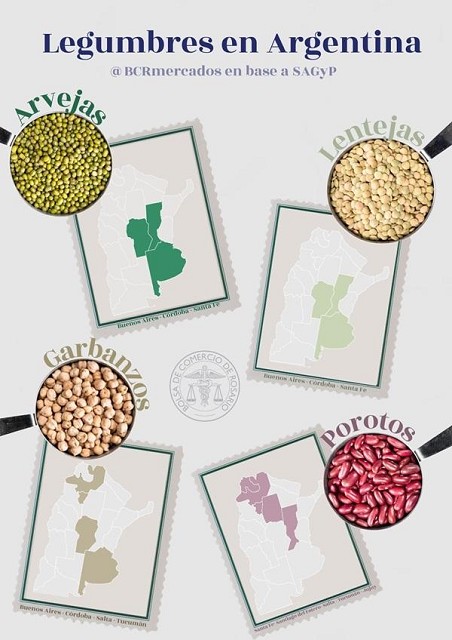 Según las últimas estimaciones desde la Secretaría de Agricultura Ganadería y Pesca (SAGyP), el área de siembre esperada para legumbres de invierno es de 245.000 hectáreas, de las cuales 124.000 se destinarían a la implantación de garbanzo, 97.000 a la de arvejas y 24.000 a lentejas.