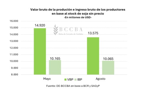 Por otro lado, cuando se toma como referencia el valor del dólar MEP, las pérdidas para el productor serían mayores, principalmente por un aumento en la brecha con el dólar exportador. En promedio, en mayo el productor recibió un precio promedio de USD 246 por tonelada, mientras que el precio actual equivale a USD 217 por tonelada, reflejando una pérdida del 12%. De esta manera, el stock de soja sin precio de los productores en el mercado local se ha desvalorizado en más de USD 950 millones.