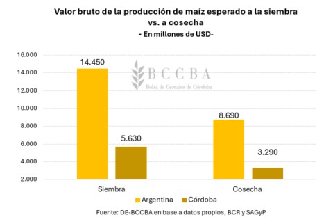 De esta manera, el “efecto chicharrita-clima” y el “efecto precio”, provocaron que los ingresos teóricos totales para todos los actores de la cadena a nivel nacional (incluido los derechos de exportación) se reduzcan en USD 5.760 millones. En lo que respecta a Córdoba, la principal productora de maíz a nivel nacional, las pérdidas económicas respecto al potencial se posicionan en torno a los USD 2.340 millones.