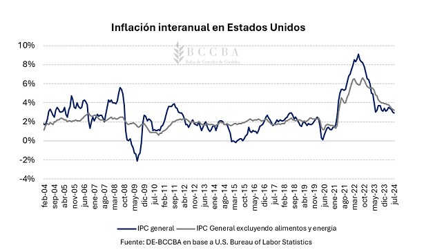 Además, al considerar la serie que excluye en su cálculo a los alimentos y la energía (proxy de la Inflación núcleo, la cual brinda una aproximación de la tendencia a mediano plazo del crecimiento del nivel de precios) la inflación continúa disminuyendo y durante julio alcanzó el 3,2%. Por otra parte, las ventas minoristas durante julio crecieron por encima de las expectativas. Por último, en cuanto al mercado laboral estadounidense, durante julio se registró el quinto aumento consecutivo de la tasa de desempleo.