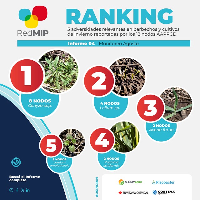 El informe subraya que las malezas de otoño-invierno siguen siendo una preocupación central. Especies como Rama Negra (Conyza sp.) y Rye grass (Lolium sp.) continúan siendo los principales objetivos en los barbechos destinados a cultivos de verano en la mayoría de las zonas que componen la red.