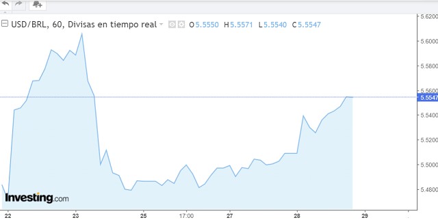 Y para volcar nafta a la situación, el real brasileño volvió a caer en relación al dólar.