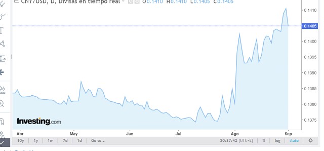 Desde inicios de agosto, el yuan no ha dejado de crecer en términos de las restantes monedas.