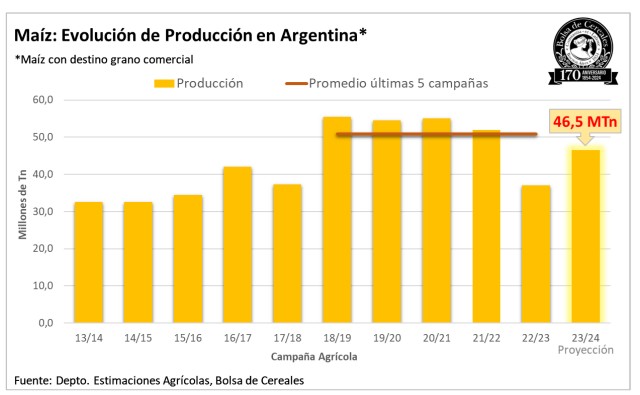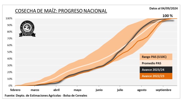 Mientras se incorporan los primeros lotes de la campaña 2024/25 la cosecha de maíz grano comercial se da por finalizada con un rinde medio de 64,9 qq/Ha y una producción total nacional de 46,5 MTn