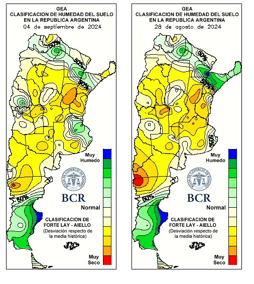 Las lluvias recientes en la región núcleo no alcanzaron para revertir la tendencia a la baja en la intención de siembra de maíz. Ni siquiera en la franja este, donde los milímetros fueron más generosos. Ya se no habla de aumentar la superficie sembrada, sino de contener el recorte. En el sector sur de la región GEA, N de Buenos Aires, dónde la plaga de la chicharrita ha tenido menos impacto y las lluvias de “Santa Rosa” dejaron entre 30 a 50 mm, se espera una reducción “leve”, con caídas del 10% en el NE bonaerense y del 20% en el NO de Buenos Aires. En el resto de la región, las caídas son mucho más abruptas. En el centro-sur santafesino, se proyecta una baja del 50% en la superficie de maíz, mientras que en el extremo sur de la provincia la reducción sería del 30%. En el sureste cordobés hay localidades como Marcos Juárez que plantean una baja de un 10% y otras áreas hacia el sur y oeste, como en Laboulaye, con recortes que incluso superan el 50%. Los técnicos explican: “Santa Rosa era clave para tomar decisiones, aunque trajo alivio, no alcanza para cambiar el panorama”. En Corral de Bustos dicen: “para sumar maíz a la planificación se necesitan 50 mm durante septiembre y no hay pronóstico de lluvias por delante”, dicen los técnicos de Corral de Bustos, siendo esta localidad junto a Arias, y La Carlota zonas privilegiadas en Córdoba con 15 a 30 mm. En estas zonas se plantea una reducción de al menos el 20%. Córdoba tiene un enorme problema con la siembra maicera este año. Advierten que: “en áreas donde históricamente se siembra maíz tardío, como son el centro, oeste y sur de Córdoba, la caída podría superar el 50%”.