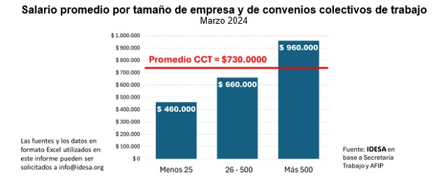 ¿Cuán coherente es la centralización de la negociación colectiva con la estructura de salarios de la economía? Según datos de la Secretaría de Trabajo, a marzo 2024, el salario promedio de todas las categorías de los principales convenios colectivos fue de $730 mil.