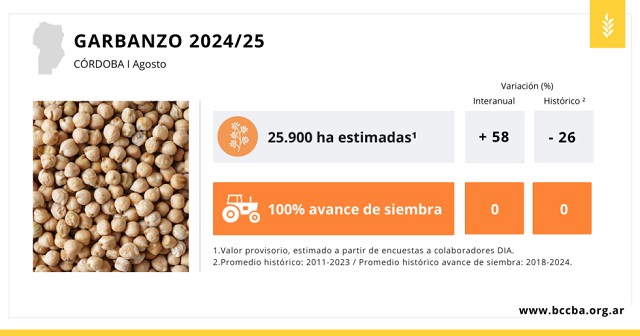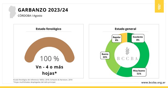 El garbanzo, con el 100% de los lotes en estado fenológico Vn, comenzó a mostrar síntomas leves de falta de agua principalmente en el dpto. Totoral, según informaron referentes zonales.