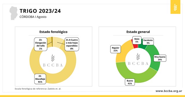 El estado fenológico del cultivo se concentra principalmente en macollaje, con un 8% de los lotes en estadios fenológicos anteriores.