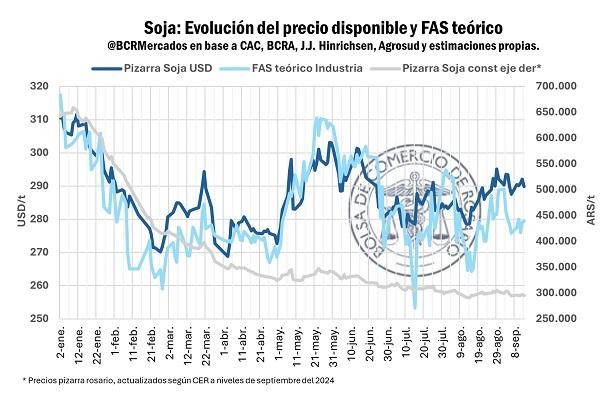 En un marco de intensa demanda externa por los productos del complejo soja, la pizarra Rosario en dólares ha marcado una recuperación desde agosto, acumulando ganancias de 4% en dólares.