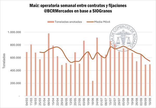 *Más allá de que la pizarra en dólares por maíz llega a máximos desde mayo, el ritmo de operaciones cae en septiembre.