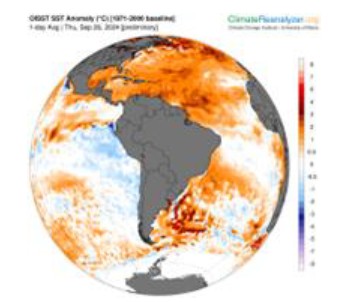 Este comportamiento indica el riesgo, que, aunque el evento que se desarrolla en el Océano Pacífico Ecuatorial sea débil, al sumarse los efectos de los vientos polares, su acción combinada da lugar a la persistencia de grandes extensiones con perturbaciones climáticas negativas en el interior de La Argentina a lo largo de toda la temporada 2024/2025.
