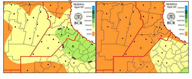 Tras la llegada del agua, los lotes regulares a malos pasaron de 50% a 25% del área. Ahora, el 45% está en buen estado y el 30% muy bueno. Pero en las encuestas de esta semana, los técnicos concuerdan en que las lluvias llegaron tarde para revertir el daño al rendimiento, ya que el 70% del cultivo se encuentra en llenado de granos y el 30% en floración. “Hay menos espigas y menor número de granos por metro cuadrado por la falta de agua en momentos claves del cultivo”, explican. De todas formas, también coinciden en que las lluvias de esta semana han sido fundamentales para frenar la caída del rinde. Hasta la semana pasada se había descontado un 10% del rinde promedio de la región y 500.000 t del horizonte productivo que se tenía a la siembra (4,9 Mt).
