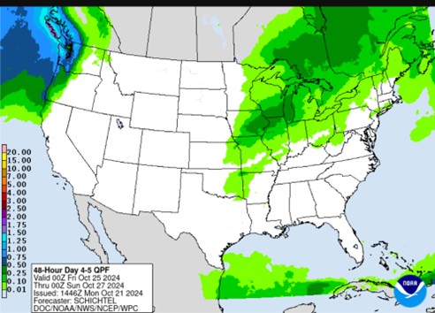 Pero más que estas lluvias, vale la pena poner atención en la posibilidad de que nuevas precipitaciones, ahora de consideración, con especial fuerza sobre Iowa, Illinois y Wisconsin, tal como expresa el mapa que sigue.